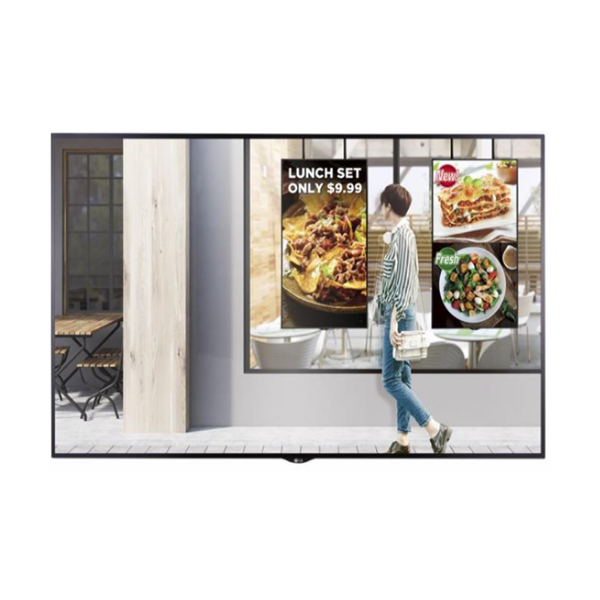 Se trata de un monitor digital profesional de gran tamaño (49”) dispuesto de una tecnología y luminosidad óptima (4000 nit) para exponer contenido de gran calidad y resolución durante las 24h del día, 7 días a la semana. Apto para escaparates. Ideal para ambientes de interior y semi exterior.